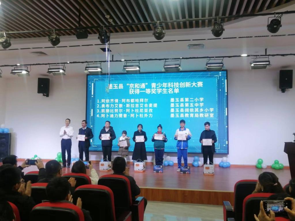 12月16日頒獎(jiǎng)儀式在北京市援建的墨玉縣青少年校外活動(dòng)中心隆重舉辦。墨玉縣委常委王啟亮,地區(qū)科協(xié)、墨玉科協(xié)、教育局、工會(huì)、團(tuán)委的負(fù)責(zé)人共同出席了頒獎(jiǎng)儀式,現(xiàn)場(chǎng)觀看頒獎(jiǎng)儀式的還有各中小學(xué)校師生代表近200人。