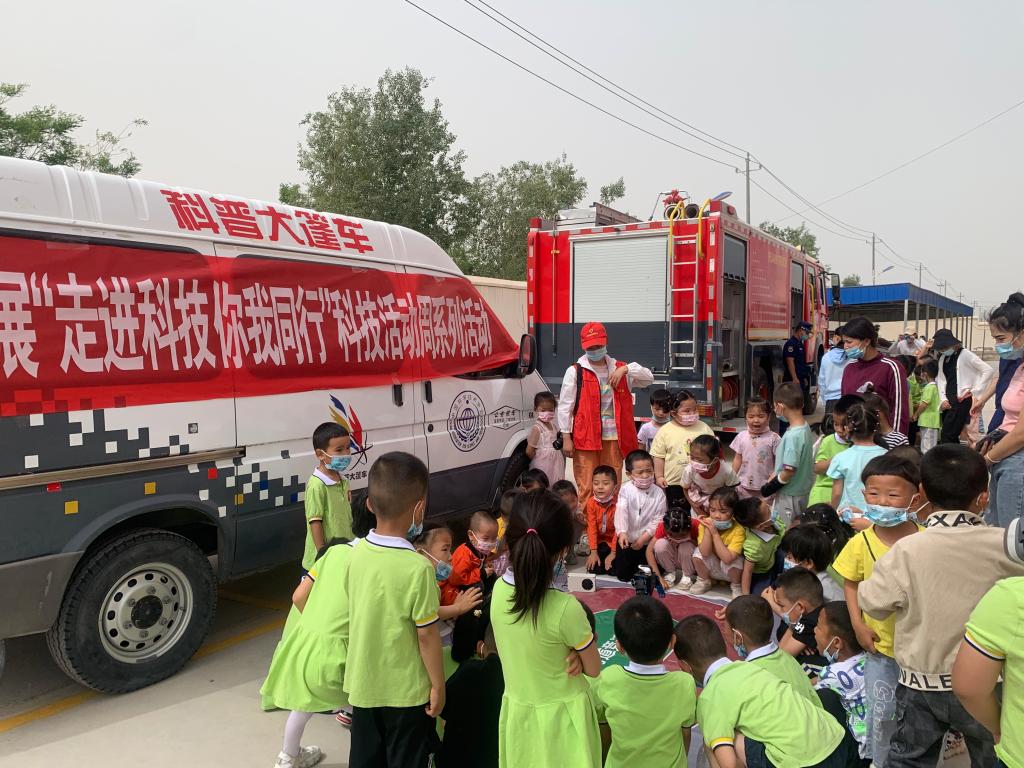 本次活動若羌縣科協開去了科普大篷車,帶著許多科普展品供學生體驗,縣消防大隊也開去了消防車供學生參觀、體驗學習。