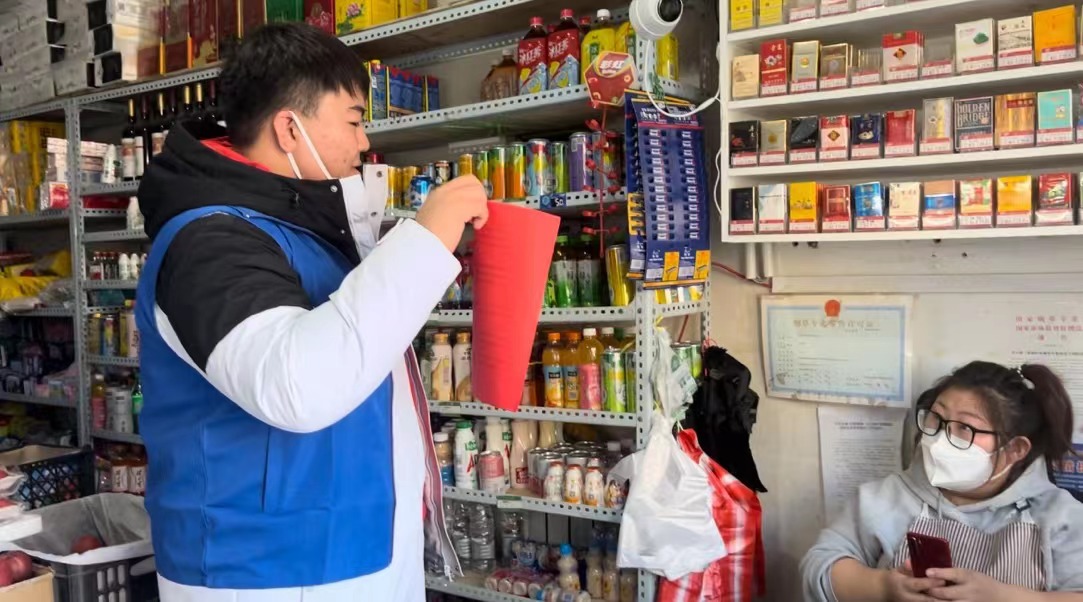 工作人員走進商鋪、理發(fā)店、烘焙店等公眾場合,向店主科普售賣商品時要注意提醒顧客保持1米以上安全社交距離,商品上貨前需仔細進行消殺等注意事項。