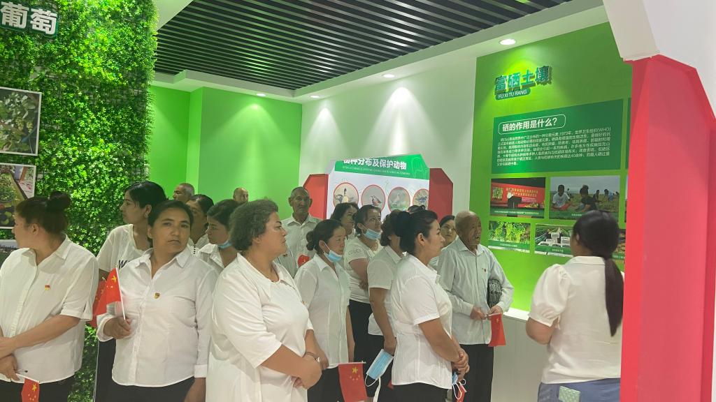 6月29日,焉耆縣四十里城子鎮(zhèn)店子村科普館里,一群身著正裝的老黨員們專注的聽著科技志愿者對(duì)館內(nèi)展品的介紹,饒有興趣地親身體驗(yàn)著、互動(dòng)著,表現(xiàn)出濃郁的興趣。