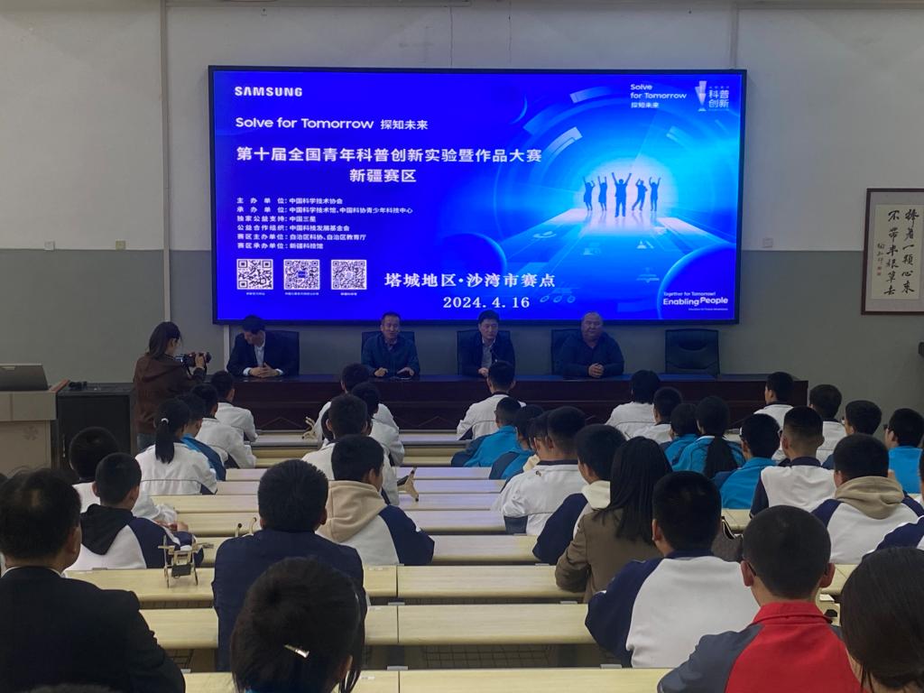 4月17日,第十屆全國青年科普實驗暨作品大賽新疆賽區塔城地區沙灣市賽點--“未來太空車”比賽順利在沙灣一中開展,來自全市各中學共60名選手參加了比賽。