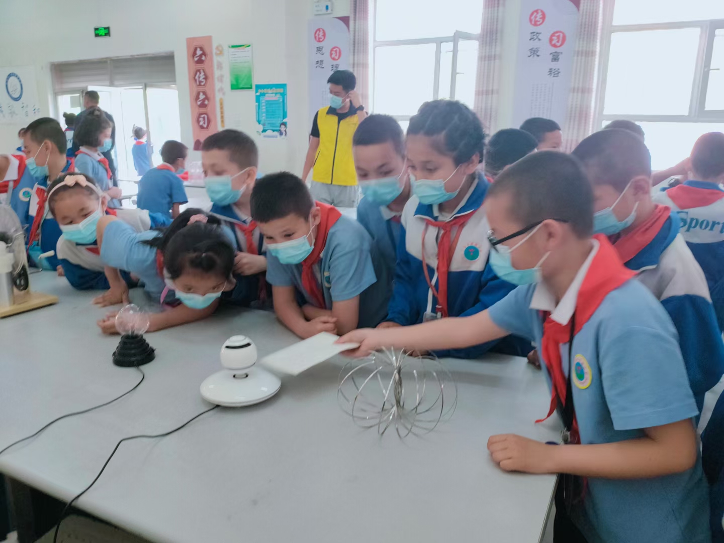 活動(dòng)展出了“VR”技術(shù)“重力測(cè)試”“色彩的奧秘”等科品,科普志愿者為巴楚縣新城小學(xué)300名師生仔細(xì)講解了每項(xiàng)展品的科學(xué)原理,并現(xiàn)場(chǎng)表演科學(xué)實(shí)驗(yàn),引導(dǎo)他們把課堂學(xué)到的知識(shí)與現(xiàn)實(shí)生活結(jié)合起來,在動(dòng)手操作的過程中感受科學(xué)的魅力。