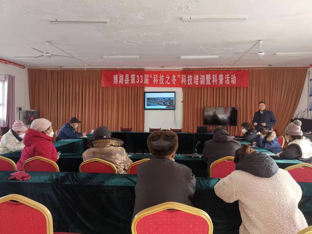 12月28日,博湖縣科協聯合巴州科協在本布圖鎮再格森諾爾村、那音托勒蓋村,才坎諾爾村、拉罕諾爾村開展了 “科技之冬”科技培訓和科普活動。巴州科普講師團專家圍繞產業發展,為農牧民開展了設施農業、大棚蔬菜種植、牛羊養殖及品種改良、辣椒種植等實用技術培訓和科普大篷車聯盟系列科普宣傳活動。講師團專家通過現場面對面講解、現場示范指導等方式為農牧民朋友答疑解惑,破解技術難題,受到了老百姓的好評。