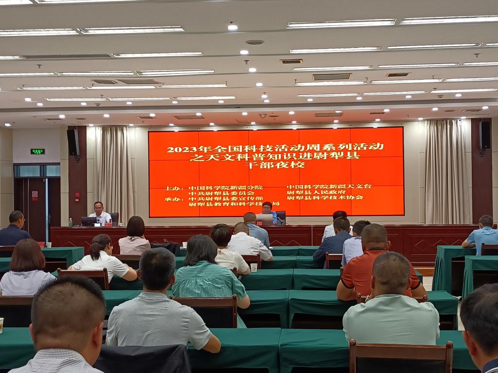 5月20日至5月31日是今年的全國科技活動周,為弘揚扎根邊疆、奉獻邊疆的科學家精神進縣直黨政機關干部夜校。5月25日,尉犁縣委舉辦第二十五期干部夜校暨“新時代基層干部大講堂”,特邀中科院新疆天文臺科學傳播中心副主任、新疆天文學會秘書長宋華剛以《黑洞不黑》為主題,為全縣黨員干部群眾講一堂生動有趣的課程,縣長助理張立清主持。縣四套班子及縣處級領導、縣直各部門主要負責同志,縣直各單位主要負責人在主會場聆聽;各鄉鎮班子成員、機關干部,各村(社區)工作隊成員、“兩委”班子成員、村民代表在分會場聆聽;各部門其他工作人員、各中小學師生和社會各界群眾也將通過尉犁新視角抖音直播間參加學習。