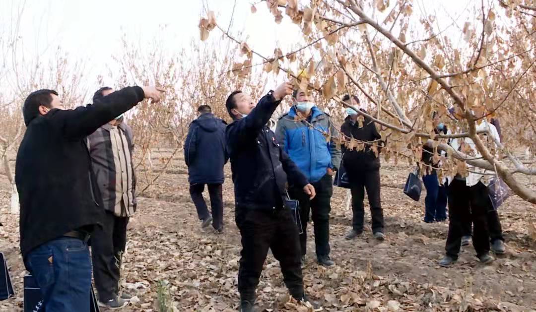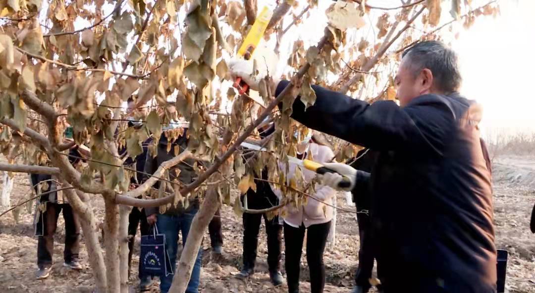 在農(nóng)田,專家們詳細講解了小白杏樹修剪的目的、意義、時間、步驟和方法,并根據(jù)不同樹的情況現(xiàn)場作了疏枝、短截等具體的修剪示范,科技特派員圍著果樹認真觀看并記錄,虛心向?qū)<艺埥?,還親自上前進行剪枝實踐。