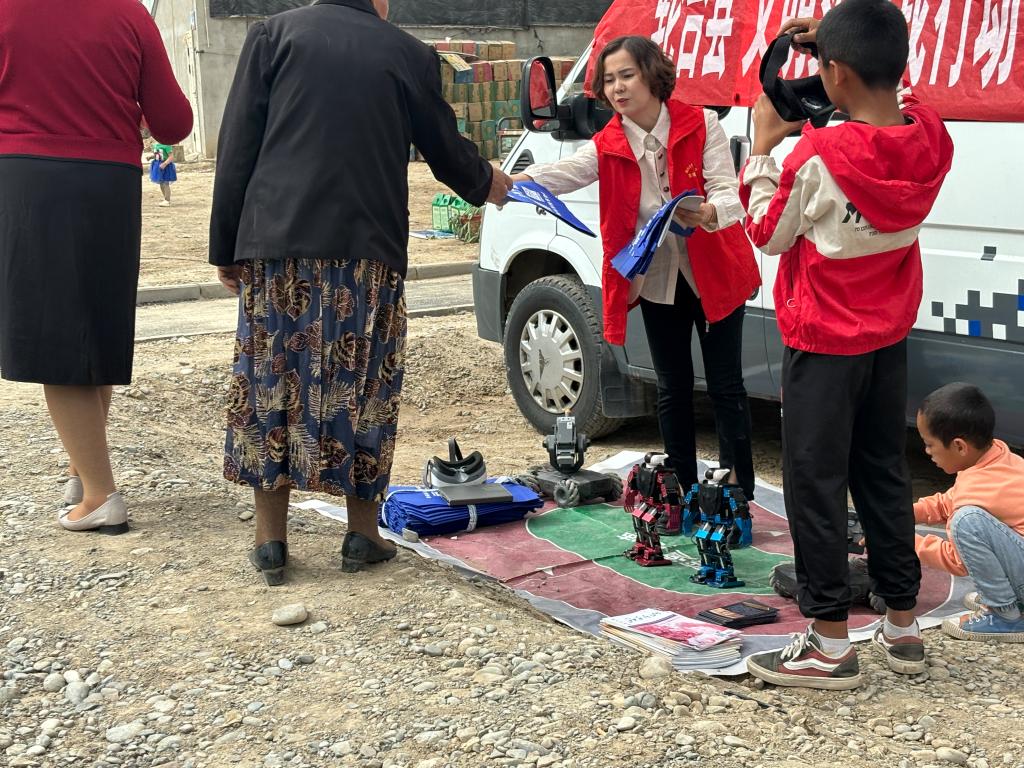 活動(dòng)采用羊角蜜銷售、美食品鑒、文藝匯演、科普宣傳、參觀體驗(yàn)等多種形式相結(jié)合的方式進(jìn)行。活動(dòng)中,科普志愿者向在場(chǎng)群眾發(fā)放科普?qǐng)D書、宣傳科普知識(shí)、科普小禮品,讓群眾參觀體驗(yàn)科普大篷車“全地形探測(cè)小車”“無(wú)人機(jī)”和“VR眼鏡”等科普體驗(yàn)項(xiàng)目,直觀形象、生動(dòng)有趣地展現(xiàn)了科學(xué)的魅力,充分調(diào)動(dòng)了鄉(xiāng)村群眾參與科普、走進(jìn)科學(xué)的興趣和熱情。