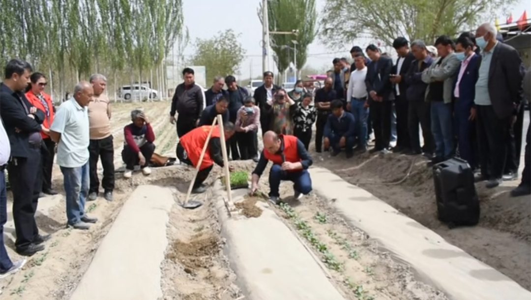 4月10日 ,洛浦鎮組織科技志愿者在庫爾干村,開展朝天椒種植現場培訓會,來自鄉鎮的農技站技術員、各村黨支部書記及種植戶共90余人參加。