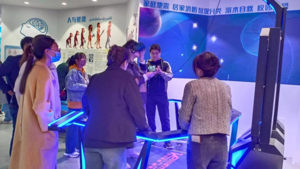 在科普館,大家便被琳瑯滿目的科技展品所吸引,科普館內設置了觀測VR眼鏡、模擬地震臺、磁懸浮地球儀等主題展區。活動中心負責人帶領大家參觀了科普館,并逐一介紹了各項科普器材使用方法及科學原理,帶大家深入了解節能低碳環保相關的知識,通過小游戲的方式宣傳節能減排和低碳生活的意義和重要性。