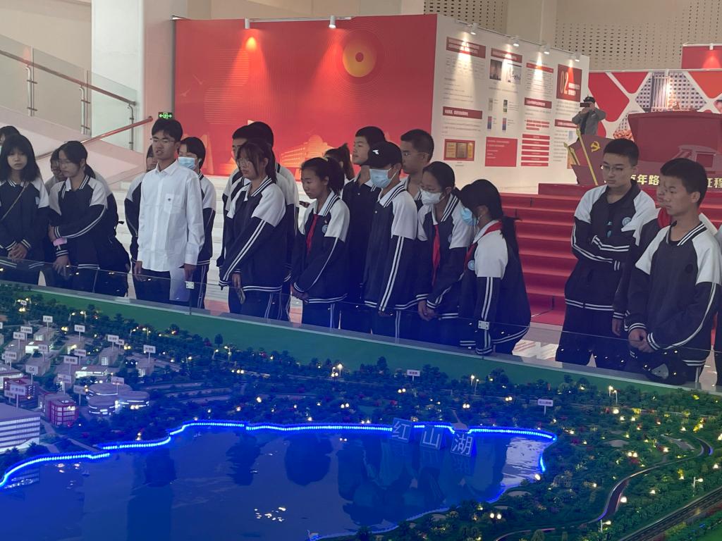 講解員帶領老師和同學們參觀了校區沙盤,并詳細介紹了校區建設背景和未來規劃以及辦學特色和亮點。