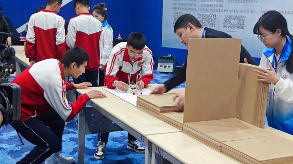 比賽設置的“未來太空車”考題,鼓勵學生利用科技手段和創新思維,面向未來開展創意實驗設計,利用指定材料、動力系統,自行設計、制作裝置,在賽道上完成行駛和攀爬等指定任務。溫宿縣共計40余名青少年參加了“未來太空車”作品比賽,參賽人員通過前期團隊合作摸索對行駛動力支撐、速度、阻力、摩擦力等制約因素進行分析研究,充分發揮創意制作和團隊協作的精神,制作團隊專屬的“未來太空車”參加比賽。