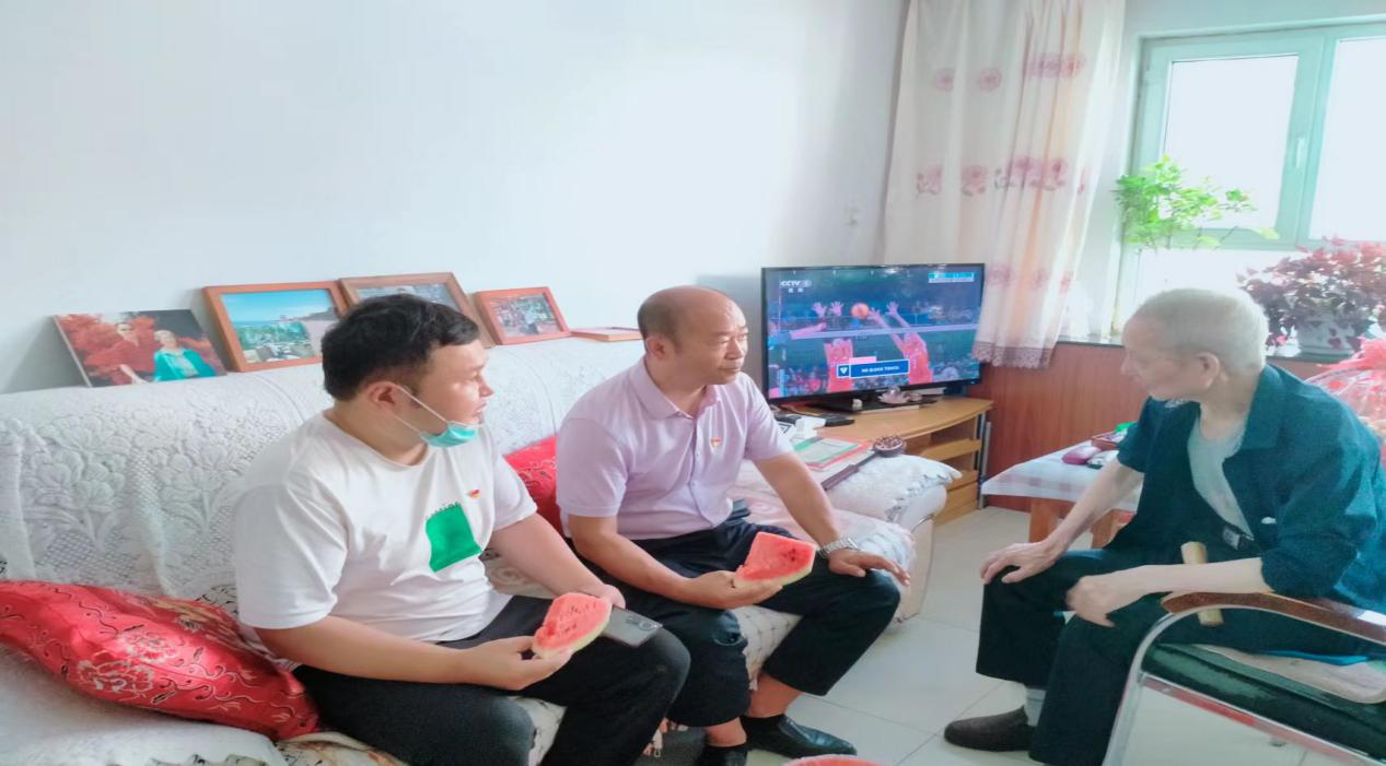 全體黨員干部在紅館內升國旗,唱紅歌《歌唱祖國》《沒有共產黨就沒有新中國》,并給老黨員李仕義頒發了“光榮在黨50年”紀念章。劉改玲、加孜拉、朱成強等老黨員為新黨員佩戴了黨員徽章,機關工委書記劉改玲帶領新黨員入黨宣誓,老黨員一同重溫入黨誓詞。趙亞新同志代表新黨員發言。21名預備黨員向黨說心里話,并幫助“訪惠聚”工作隊所在社區的家庭經濟困難孩子們實現了微心愿。黨員干部們一起和黨旗合影,并參觀紅館。最后開展“萬名黨員進萬家”活動,機關工委、團委、婦聯、科協黨支部黨員各帶2至3名預備黨員,入戶看望老黨員、老模范和先進人物們。
