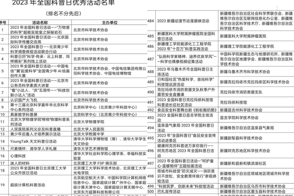 近日,中國科協辦公廳公布2023年“全國科普日”活動優秀組織單位名單和2023年“全國科普日”優秀活動名單。烏蘇市科學技術協會“全國科普日”系列活動“科技筑夢,創新未來”科技館活動被評為2023年“全國科普日”優秀活動。