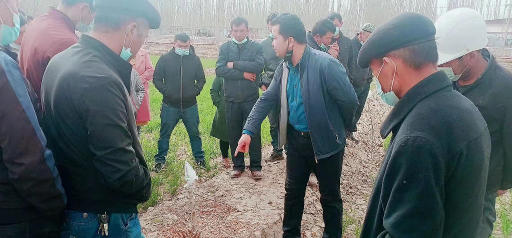 3月28日,伽師縣科技局邀請自治區林科院副研究員木合塔爾·扎熱深入伽師縣新梅示范園,利用3-4小時進行現場指導培訓,幫助農民檢查苗情、病蟲害防治,指導農民因地、因苗、因時搞好土、肥、水管理和修枝壓枝及病蟲防控工作,提高果樹增強抗病能力。