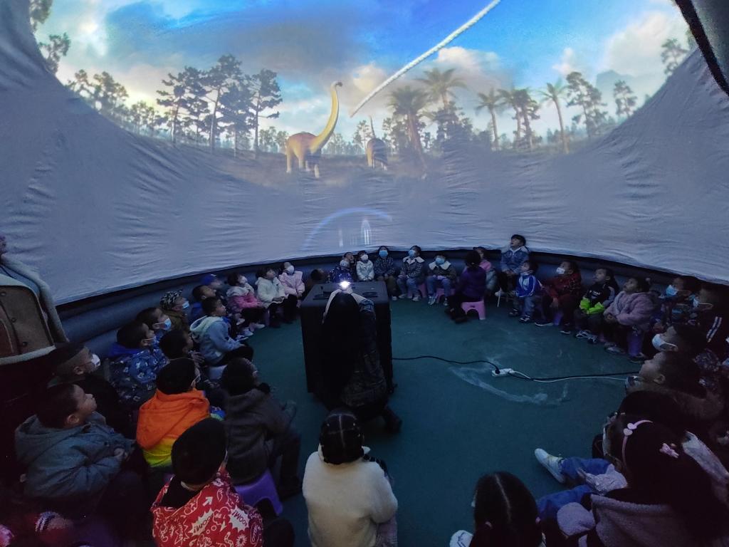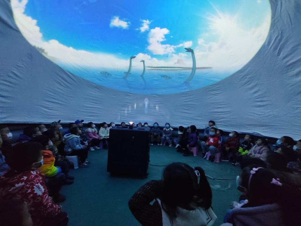 球幕影院中,《變形記》《恐龍的滅絕》《汽車加工廠》等影片的真實生動的情景再現,使孩子們流連其中,時不時發出驚訝聲與贊嘆聲,無不感嘆科學的神奇與智慧。