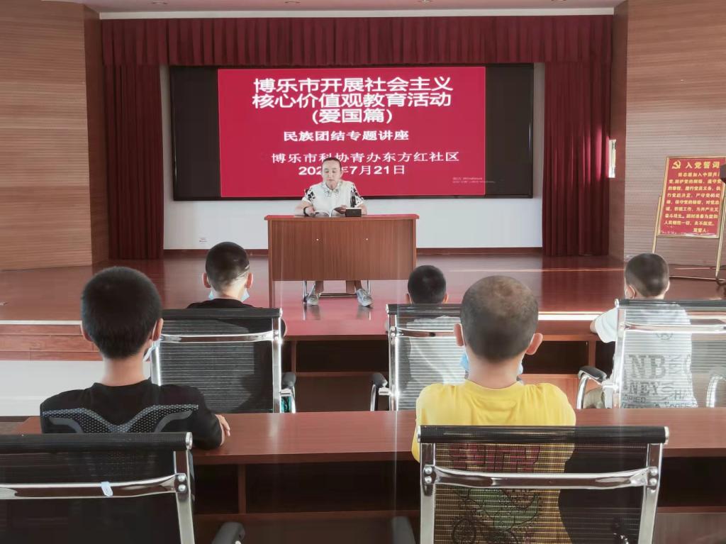 博樂市科協在開展科普示范教育基地社會主義核心價值觀的宣傳教育實踐活動中,采取民族團結條例專題宣講、崇尚科學遠離邪教專題講座、發放科普知識宣傳資料等形式,積極引導各族群眾踐行社會主義核心價值觀,最大限度調動和發揮他們的積極性、主動性和創造性,充分發揮愛國教育基地和科普教育基地的示范引領作用,將核心價值觀融入日常生活、學習工作中。