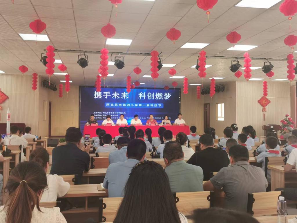 6月9日,阿克蘇市在第四小學啟動“攜手未來 科創燃夢”首屆校園科技節,活動以“體驗、創新、成長——攜手未來科創燃夢”為主題,由阿克蘇市第四小學主辦,通過開幕科技表演、授牌、科普講座、科普實驗作品展示等內容,展現了阿克蘇市各學校青少年科技成果。各片區、鄉鎮(街道)以及部分市直學校的科技工作者以及青少年共計300余人參加活動。