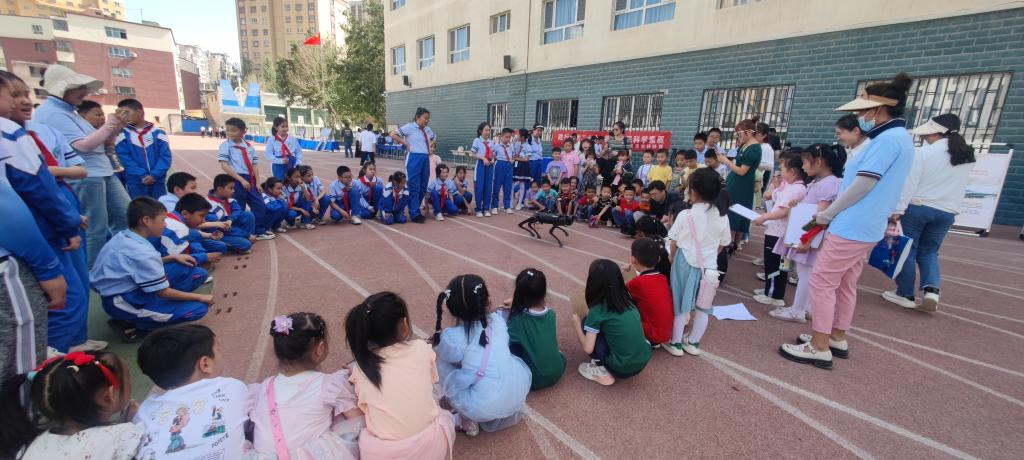激情體驗,點燃青少年科技創新探索熱情。操場上,500余名青少年分批次體驗著市第四小學青少年制作的各類航天科普展品、小發明、小制作以及地區科普大篷車科普體驗展品、無人機表演、機器狗演示等科普展品,地區科技館科技志愿者為青少年講解科學原理,青少年對科技展品的認識和應用水平有了進一步提升,激發青少年愛科學、學科學、用科學的濃厚興趣。