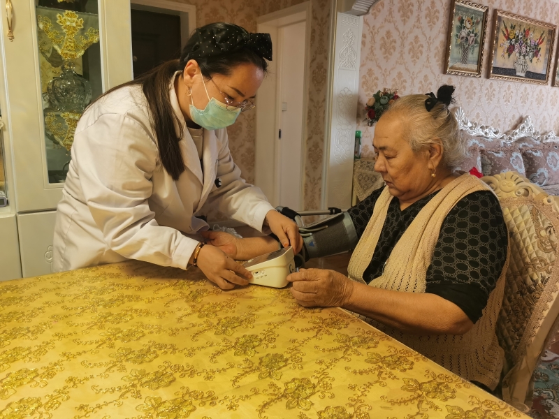 塔城市婦幼保健院科普志愿者給居民講解健康營養(yǎng)知識。義診過程中,醫(yī)護(hù)人員免費為居民量血壓、測血糖,耐心地解答居民咨詢的各類健康問題。同時,針對行動不便的老人,醫(yī)護(hù)人員還上門開展了健康服務(wù)。