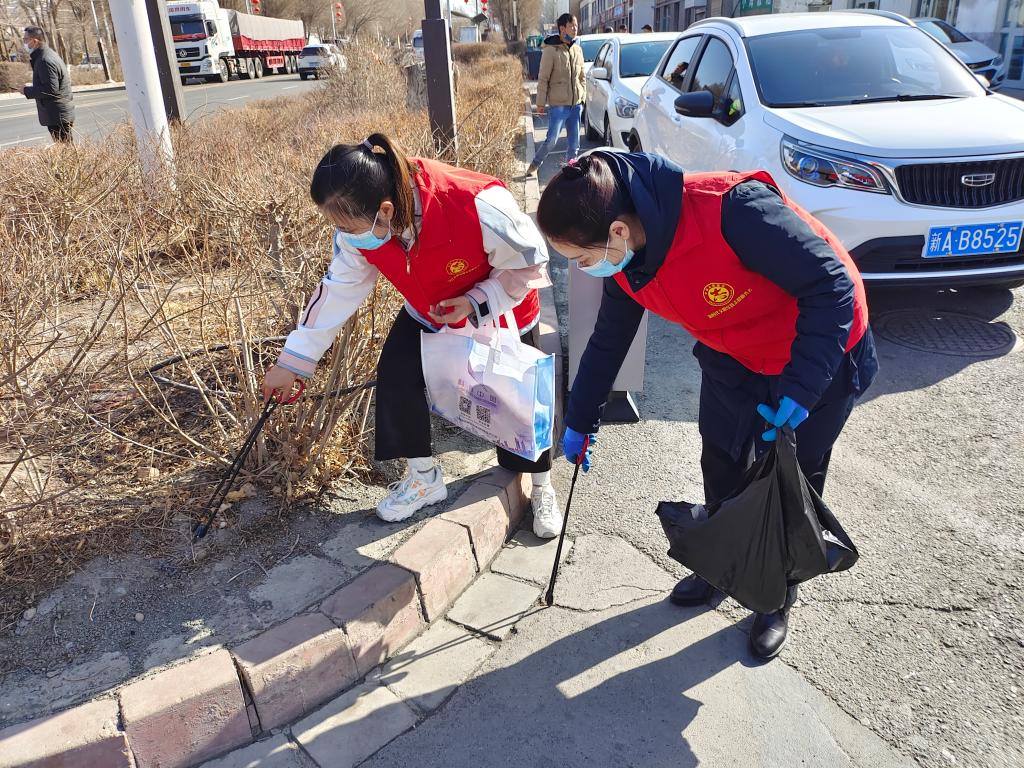 隨后,志愿者們來到達坂城街面清掃環境衛生,拾撿各類廢物、煙頭煙蒂、紙屑、塑料包裝袋等垃圾,擦洗公交車站牌、廣告牌等,使得達坂城街面環境更加整潔靚麗。群眾