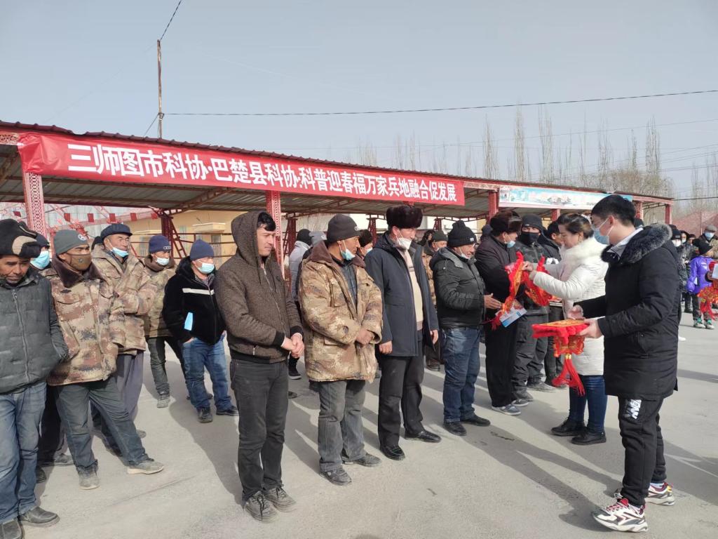 1月17日兵團第三師科協、巴楚縣科協聯合巴楚縣阿克薩克馬熱勒鄉博爾其墩(12村)和48團5連,舉辦“科普迎春福萬家、兵地融合促發展”2023年兵地共建暨科普大篷車進鄉村、進連隊科普宣傳活動。