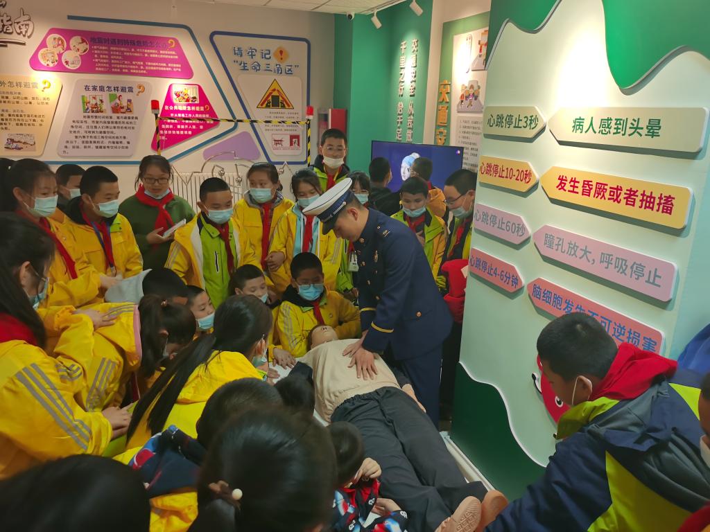 在三樓消防安全展區(qū),科技館工作人員邀請到了塔城市消防大隊的消防員為學生們講解消防器械的使用和消防安全知識。