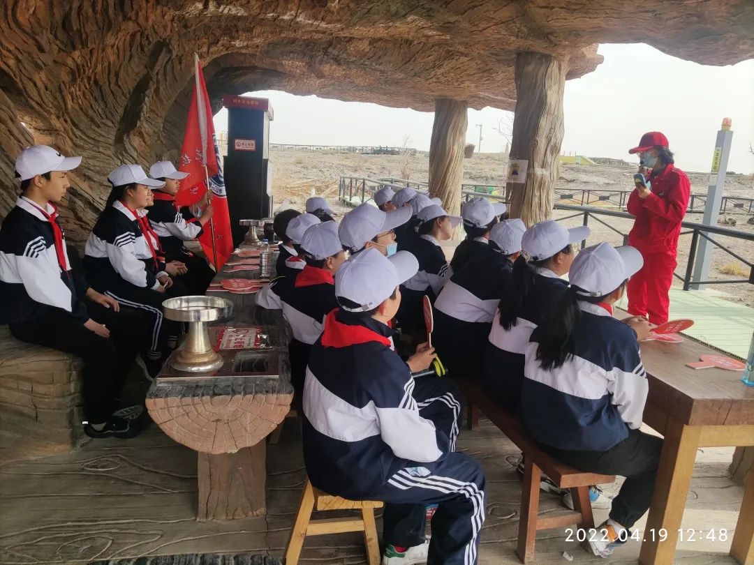 活動(dòng)一開始,講解員給同學(xué)們授予了“1219青年鉆井隊(duì)、新時(shí)代青少年鉆探隊(duì)”的隊(duì)旗,并為同學(xué)們佩戴了隊(duì)章。同學(xué)們循著“1219青年鉆井隊(duì)”的足跡,踏上了研學(xué)之旅。