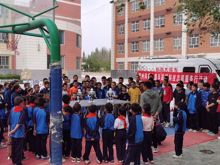 5月24日,在第七個全國科技工作者日來臨之際,巴州科協聯合焉耆縣科協在焉耆縣較偏遠鄉鎮七個星鎮幸福路社區和七個星鎮中心學校開展了科普大篷車聯盟進社區、進校園科技為民志愿服務活動。活動分為科普講座、科普觀摩和互動體驗三個部分。