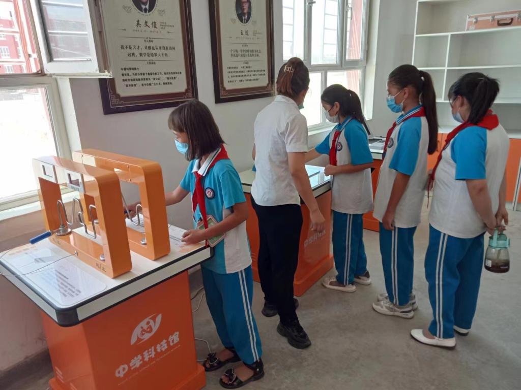 隨后,孩子們在老師的帶領下,共同參觀了先拜巴扎鎮初級中學科技館,學校科技輔導老師為同學們講解了“鐵釘橋”“旋轉的銀蛋”“跳舞的回形針”“激光豎琴”“虛擬世界”等科普設備的原理,學生們通過參加體驗和動手實踐,感受科技帶來的快樂和科教產品的魅力。