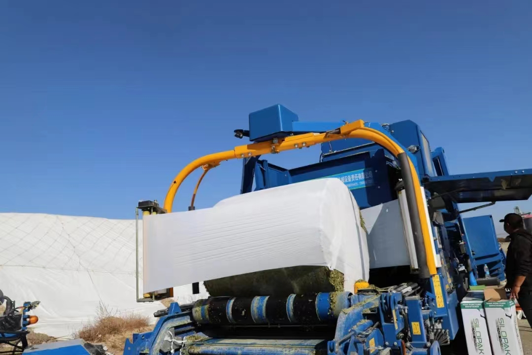 鑫塔企業科協工作人員邢天亮說道:“使用青貯打捆包膜一體機,大大提高了機器的自動化程度,使用時無需人工轉移物料,打好捆后自動包膜,大大增加了工作效率,降低了人工成本,損耗低,易長期保存,更有利于飼料青貯加工的規模性發展。”