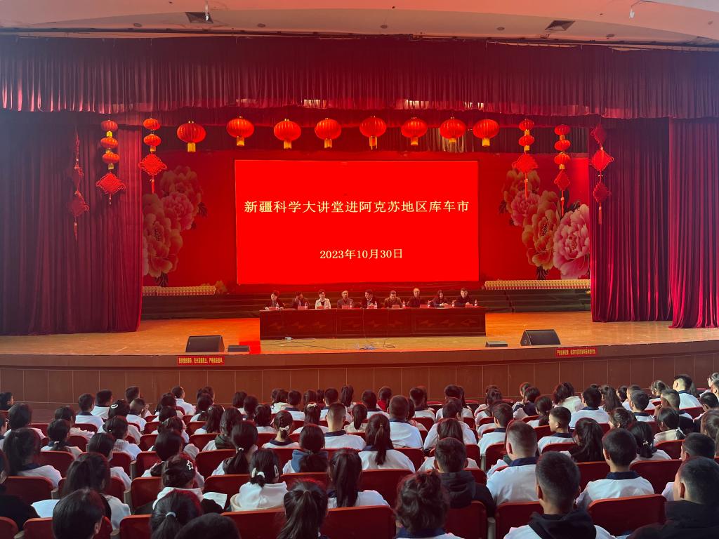 10月30日上午,在2023年“新疆科學大講堂”開班儀式上,由庫車市政府黨組成員、副市長王春梅同志主持,阿克蘇地委副秘書長吉利力·海利力同志致辭,對“新疆科學大講堂”專家一行表示歡迎。希望庫車市各鄉(鎮)、街道、村(社區)認真組織好各族群眾參加培訓,讓更多老百姓受益,不斷激發各族干部群眾講科學、愛科學、學科學、用科學的熱情,推進全民科學素質提升。