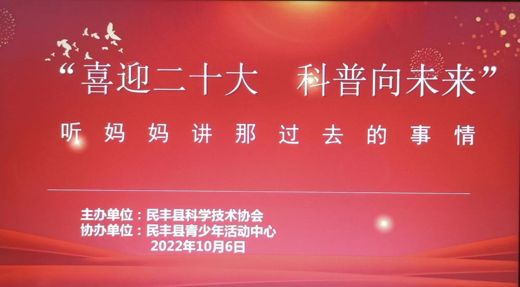 疫情無情人間有愛,疫情期間民豐縣科協牽頭縣青少年活動中心協助線上在若克雅鄉、安迪爾鄉學校組織開展“喜迎二十大科普向未來”聽媽媽講那過去的事情回憶錄教育活動。