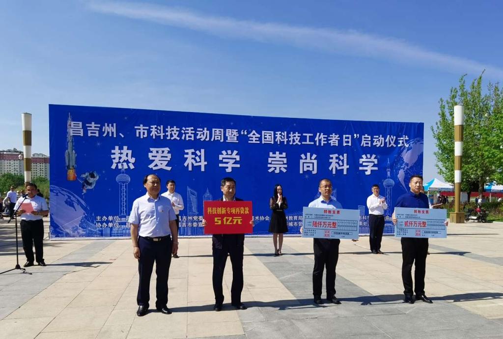昌吉市政協(xié)黨組書記、主席王洪霞出席活動(dòng)啟動(dòng)儀式并致辭,科技工作者代表進(jìn)行了發(fā)言。啟動(dòng)儀式上,向第一批“科普游示范基地”、“科普工作服務(wù)隊(duì)”進(jìn)行了頒牌和授旗。中國(guó)人民銀行昌吉州中心支行向金融機(jī)構(gòu)代表昌吉農(nóng)商銀行頒發(fā)科技創(chuàng)新貸款5億元,向兩家企業(yè)發(fā)放科技創(chuàng)新再貸款8000萬(wàn)元。