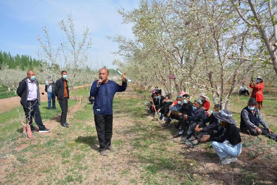 英買里鄉英買里村新梅種植大戶依明江?艾沙家有10畝新梅,去年收入27萬元,艾爾肯?亞生專家的課他聽得很認真。“新梅田間管護關鍵期,我要嚴格按照專家說的去做,絲毫不能馬虎,我期望今年我家新梅的產量、收入更高。”