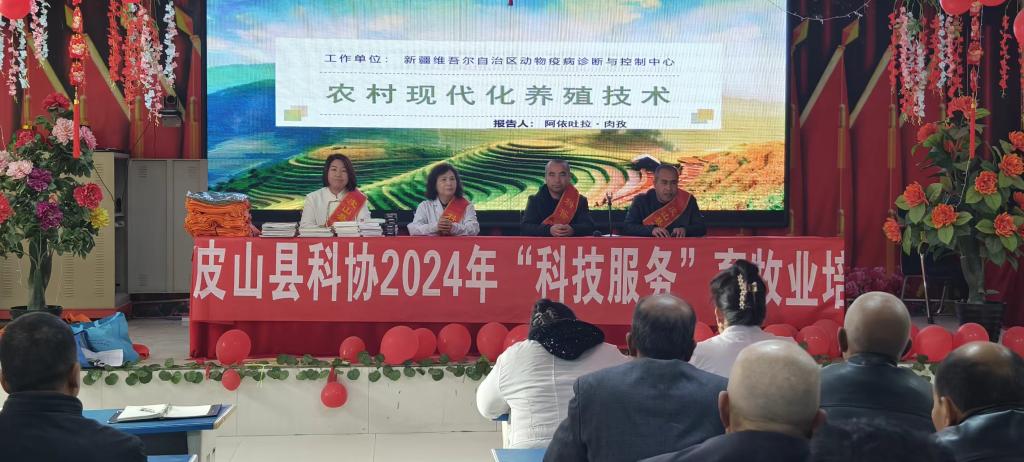 3月20日至30日,皮山縣科協利用開春之際,邀請自治區動物疫病診斷與控制中心研究員阿依圖拉·肉孜老師在皮山縣開展為期十天的畜牧業科學養殖技術培訓,此次培訓覆蓋皮山縣15個鄉鎮,各鄉鎮村級防疫員、養殖大戶、科普帶頭人及村民計劃培訓1500人,發放科普圖書、學習用品2000套。