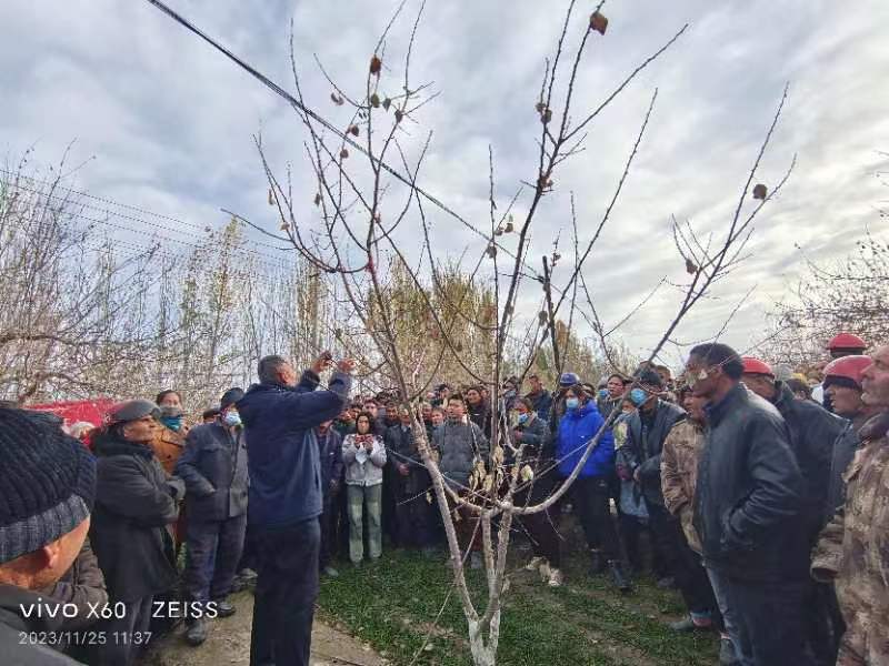 疏附縣科協(xié)特邀托克遜縣林草局林果業(yè)研究開發(fā)中心高級(jí)農(nóng)藝師白克力·塔西鐵木爾,圍繞杏樹生長(zhǎng)周期管理的特點(diǎn),針對(duì)村民種植技術(shù)匱乏等問(wèn)題,從病蟲害防治、科學(xué)施肥管理、杏樹保花保果、合理灌溉等方面進(jìn)行了詳細(xì)的講解,尤其是杏樹的修剪,果樹的修剪是果樹生長(zhǎng)中不可缺少的部分,冬季修剪是果樹一年管理中極其重要的一個(gè)技術(shù)環(huán)節(jié),合理的修剪,能調(diào)節(jié)果樹的吸收營(yíng)養(yǎng)力度與生殖生長(zhǎng)的關(guān)系,確定果樹的負(fù)載量,延長(zhǎng)果樹衰老及果樹壽命。