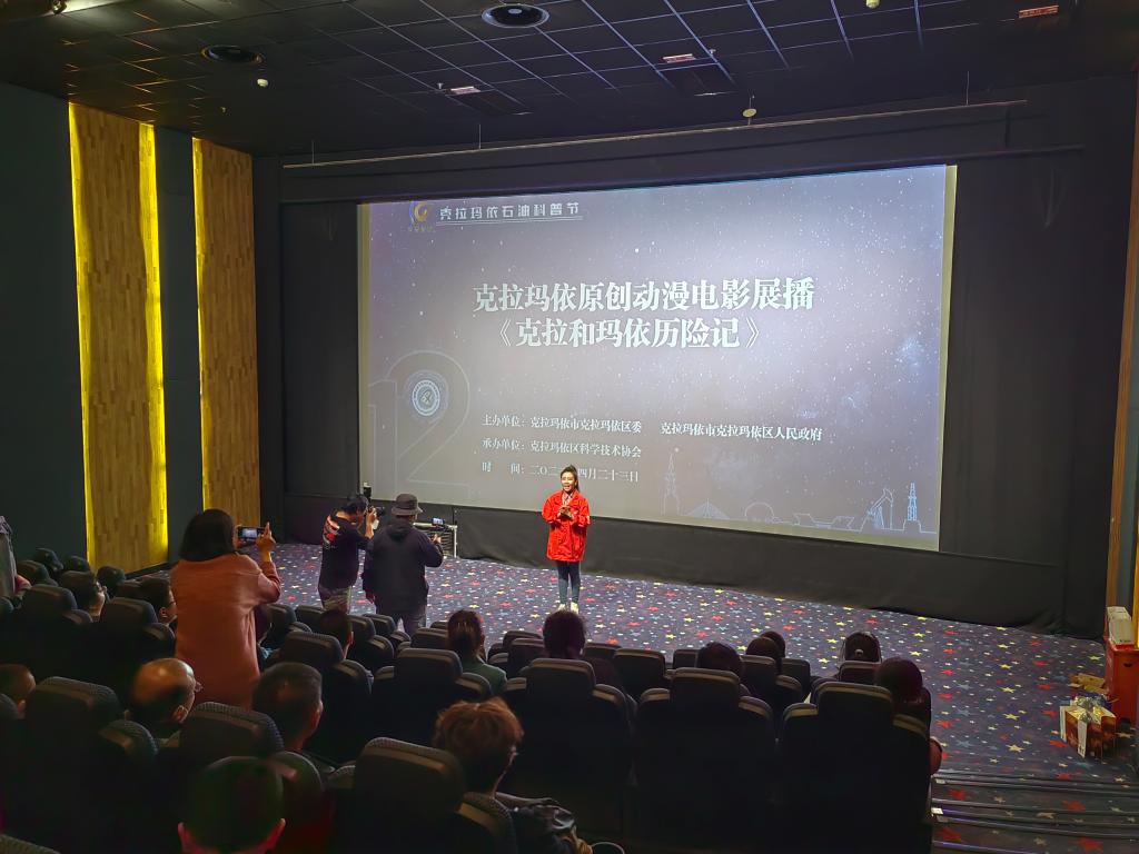 4月23日晚,克拉瑪依區科協特別邀請參加“第十二屆自治區青少年科技節”青少年科技輔導員和青少年代表100余人,在奧斯卡影城觀看2022年北京國際兒童電影展“金花獎”獲獎影片《克拉和瑪依歷險記》。