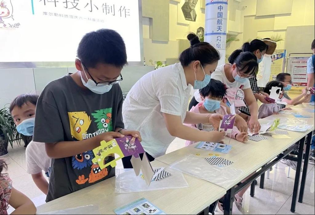 制作魔術盒是親子互動最高的節目,科技輔導員利用科普實驗材料,引導家長和小朋友親自動手,互相學習,積極合作,共同完成魔術盒,體驗科學樂趣的同時更是增進了親子之間的溝通。