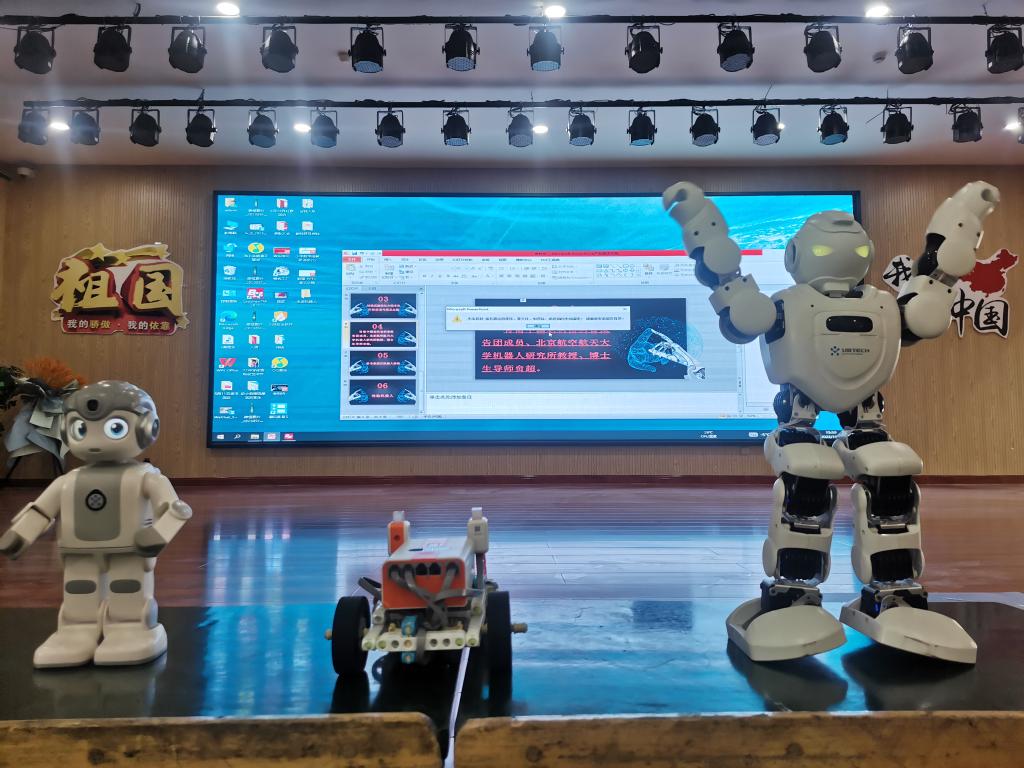授課過程中,贠超教授與學(xué)生們不間斷的互動,現(xiàn)場氛圍十分熱烈,烏市第77中學(xué)的學(xué)生們還為董教授系紅領(lǐng)巾,贈送鮮花,來表達(dá)對贠教授的歡迎及感謝之情。在科普講座結(jié)束后,烏市第77中學(xué)還在現(xiàn)場開展了機(jī)器人總動員、機(jī)器人編程科普研學(xué)等活動,將理論與實踐相結(jié)合,進(jìn)一步激發(fā)同學(xué)們熱愛科學(xué)、探索科技的熱情。