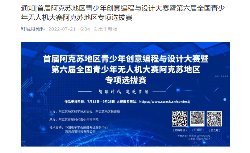 目前,阿克蘇地區首屆青少年創意編程與智能設計大賽暨第六屆全國青少年無人機大賽阿克蘇地區選拔賽已經拉開帷幕,拜城縣高度重視、積極行動、廣泛動員,在縣主要媒體上公布了大賽通知,吸引了眾多中小學生前來參加培訓。針對參賽作品申報環節,培訓老師分別從參賽形式、作品類型、作品要求、申報文件、申報步驟等方面進行了一一解讀,重點輔導了圖形化編程、Python設計、Arduion設計、Micio.bit設計等四個賽項的具體操作和案例分析,并現場解答參訓人員的提問。