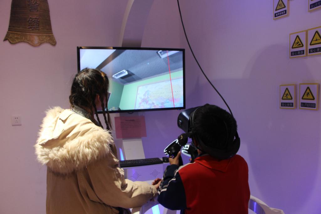 孩子們參觀了“生命·健康、習(xí)語(yǔ)·未來(lái)、公共·安全、科技·生活、農(nóng)業(yè)·現(xiàn)代、信息·傳遞、生態(tài)·環(huán)境、特色·發(fā)展、探索·發(fā)現(xiàn)”等九個(gè)展區(qū),孩子們戴上VR體驗(yàn)專用眼鏡,可以選擇不同場(chǎng)景的逃生情形,火災(zāi)、雷雨天氣、泥石流等,拿住手柄,根據(jù)提示進(jìn)行逃跑、躲避等交互操作,在危險(xiǎn)情況下學(xué)會(huì)逃生。