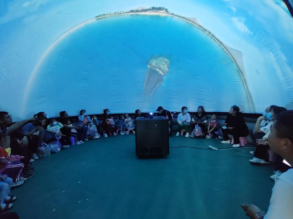 活動中,科普志愿者帶領師生參觀了一樓的“雨的形成”“萬花筒”“人體針幕”“骨骼自行車”等展品展具,琳瑯滿目的展品展具讓同學們眼前一亮,加深了同學們對物質變化、光的反射原理等科技原理的認識,激發了同學們對科學技術的濃厚興趣;在科技館二樓,同學們觀看了機器人舞蹈表演,有的學生情不自禁地跟著機器人跳起舞來,還觀看了球幕影院、體驗VR眼鏡,充分感受到了科技帶來的樂趣,獲得了科學思維的啟迪;最后,科普志愿者向同學們講解了消防安全知識,指導同學們正確使用滅火器等,提升同學們消防安全的意識。