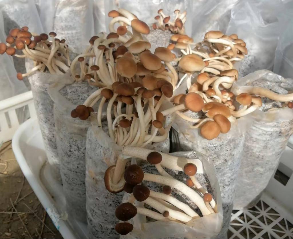 當他看到我們懷疑的目光時,給我們介紹到,你們常見的菌菇筒要在棚內經過細心的溫度、溫度的調節才能出菇。現在我是站在當地群眾的思考角度來做這個實驗的,讓這種黃色針菇和茶樹菇在脫離溫室大棚的情況下,做好林下覆土,溫度、濕度保持工作。如果實驗成功,那么我們這個實驗成果才有價值。咱們當地群眾一看,在投入成本不高的情況下,操作技術還簡單,那技術就容易推廣了,而且我相信以我多年的經驗,這個實驗成功的可能性很大,當地的群眾也希望這種接地氣易上手的種植技術越多越好。