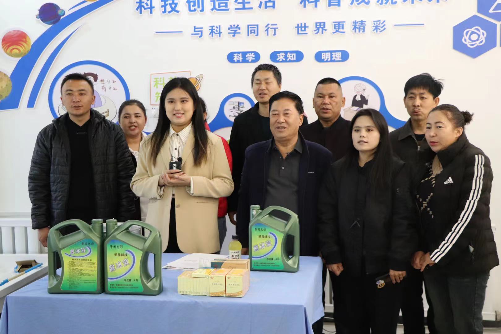 本次直播邀請了和靜縣科鳳科技研究所所長魯國忠,為現(xiàn)場的村民和廣大網(wǎng)友介紹了科鳳研究所自主創(chuàng)新研發(fā)的科鳳脫冰液。