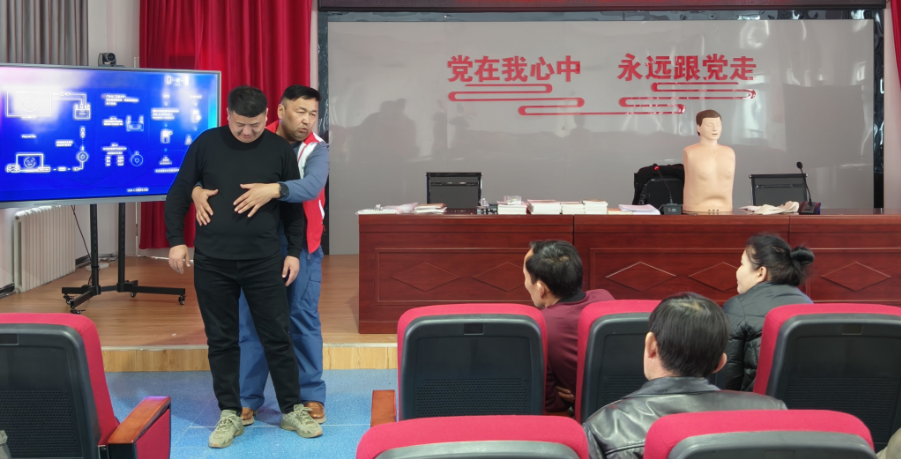 宣傳培訓活動通過懸掛橫幅、發放宣傳單、現場針對如何應急救護開展現場實操等形式,向技工學校的教職工進行了手把手的培訓宣傳。