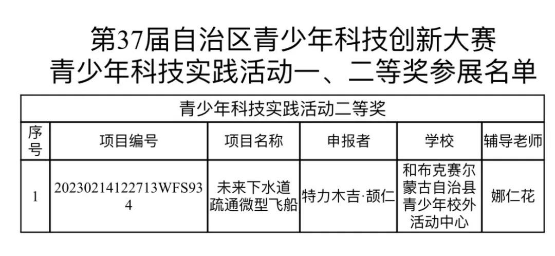 第37屆自治區(qū)青少年科技創(chuàng)新大賽獲獎名單