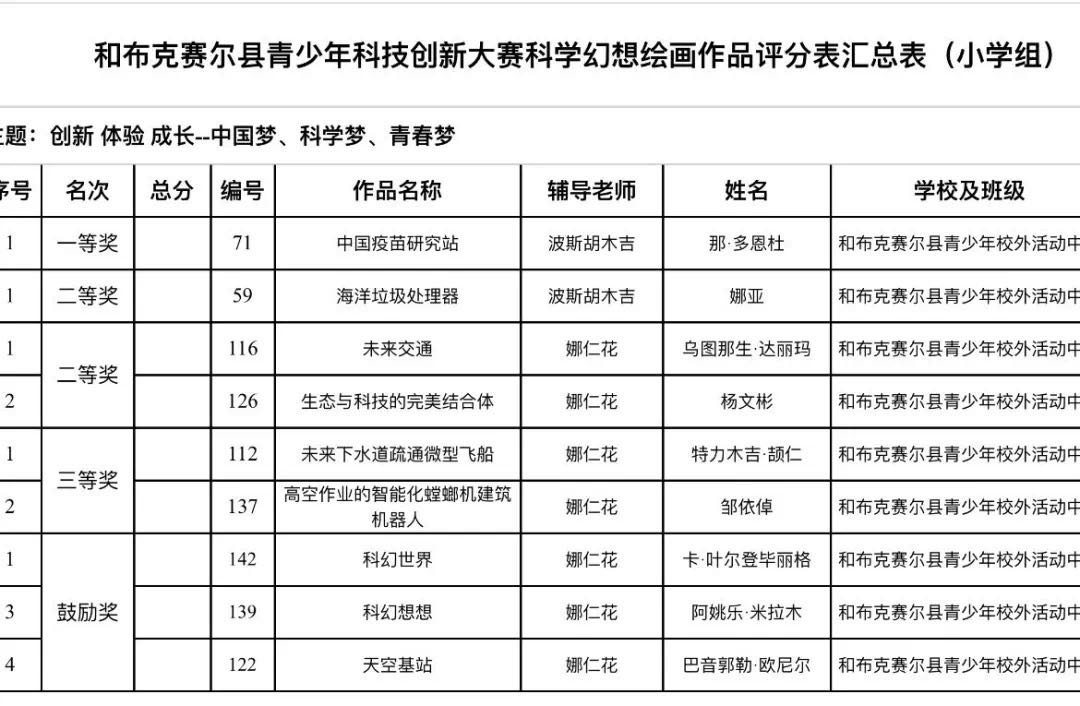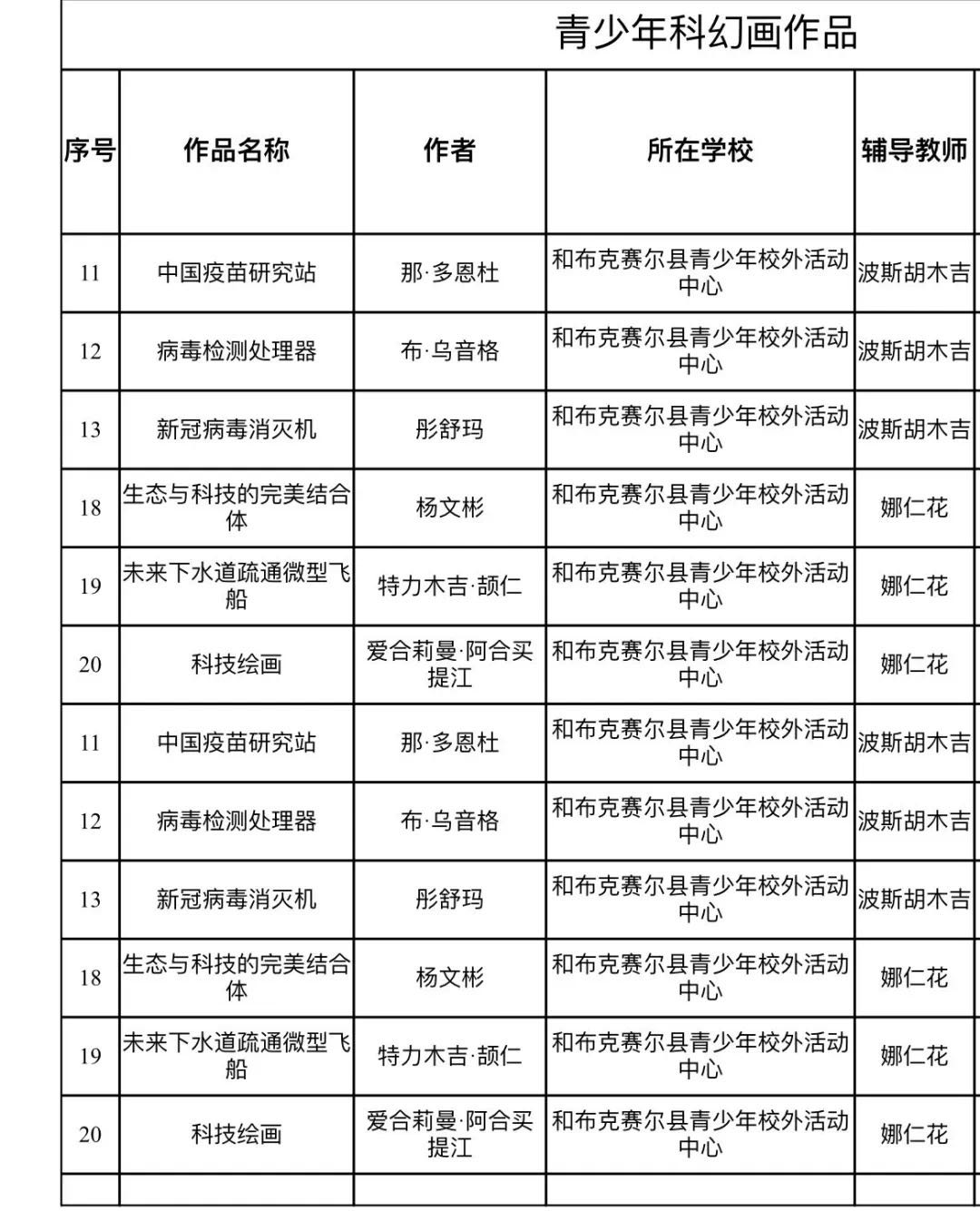 和布克賽爾縣第一小學(xué)美術(shù)教師波斯胡木吉老師、第一中學(xué)娜仁花老師的學(xué)生作品參加第37屆自治區(qū)青少年科技創(chuàng)新大賽分別獲獎。