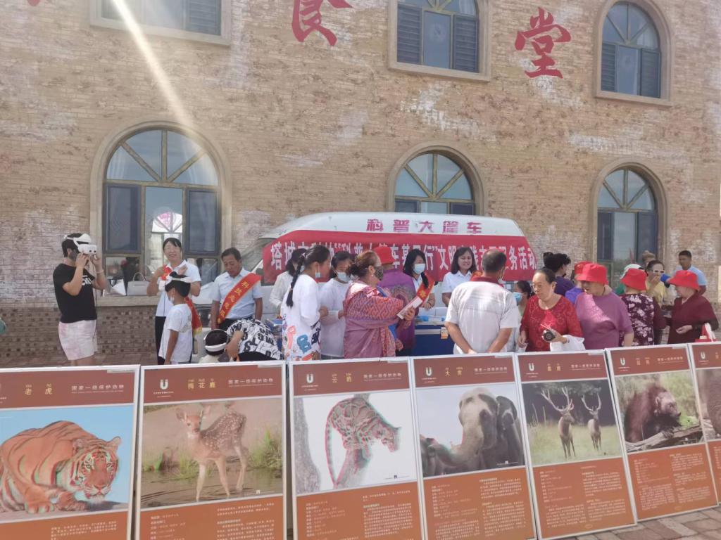在裕民縣年代印象景區,科協全體黨員和志愿者為前來參觀的群眾發放科普宣傳手冊、宣傳品等2000余份,普及《民法典》、食品安全、疫情防控、應急避險等各類科學知識,并引導讓群眾互動體驗“錐體上滾”“看誰跑得快”“天鵝絨觸覺”等科普展品,讓大家零距離感受科技的魅力,受益群眾500余人。