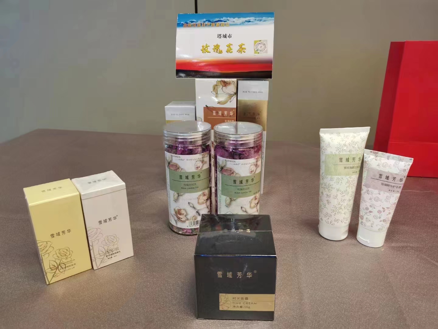 會后,西安市文化和旅游局參會領導、企業負責人和新聞媒體記者參觀新疆塔城特色旅游商品展,品嘗了具有塔城地域特色的玫瑰花茶、玫瑰花醬,試用了玫瑰純露、玫瑰精油護手霜等產品,雪域芳華玫瑰基地種植的大馬士革玫瑰產品質量及品質得到了在場嘉賓的一致稱贊。