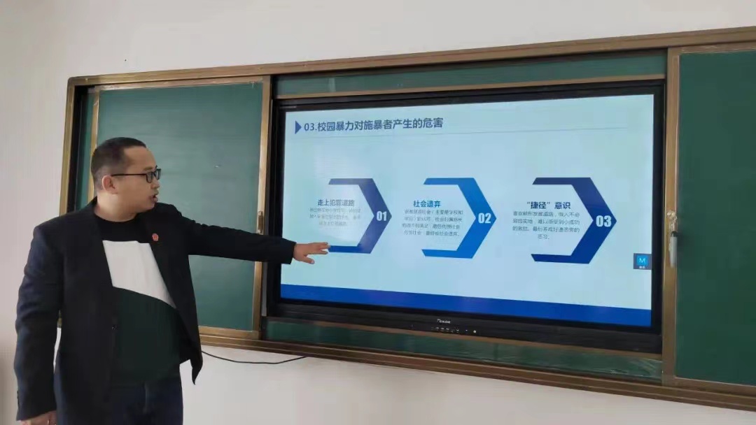 講座以《加強(qiáng)防范意識(shí)遠(yuǎn)離校園暴力》為主題,普法志愿者以簡(jiǎn)單的互動(dòng)問(wèn)答為開(kāi)場(chǎng),用通俗易懂的語(yǔ)言、簡(jiǎn)單實(shí)用的法律知識(shí),圍繞校園暴力的含義、種類(lèi)及危害、產(chǎn)生的原因、預(yù)防及處理方法等四個(gè)方面,詳細(xì)講授了面對(duì)校園暴力的時(shí)候如何保護(hù)自己、不當(dāng)冷漠的旁觀者,大膽地向施暴者說(shuō)“不”。