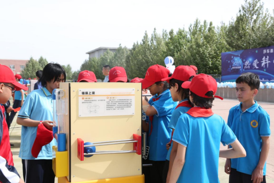 活動以挖掘學生的科學潛能,培育動手能力為宗旨,設置物理實驗表演、科普手工展覽區、科普名人展板觀看、科普大篷車流動科技館講解和科普宣傳冊發放等多個項目,內容新穎,形式豐富。在物理實驗展區,同學們認真的聽著講解,時而認真觀看研究,時而為探索后知曉答案會心一笑,時而爭先恐后去體驗,感受著實踐的樂趣,孩子們一連串的疑問立刻使活動現場沸騰起來。隨著講解員的步伐同學們又來到流動科技館展區,科技輔導員現場演示了光學、電學、數學、電磁學等科普儀器,師生們大開眼界,同學們紛紛駐足親手操作科教展品,親身體會科技的神奇魅力。